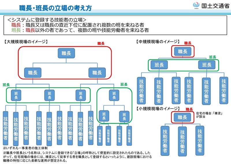 ここでいう「班長」とは、職長ではないものの、複数の建設技能者を束ねる立場の人のことです。